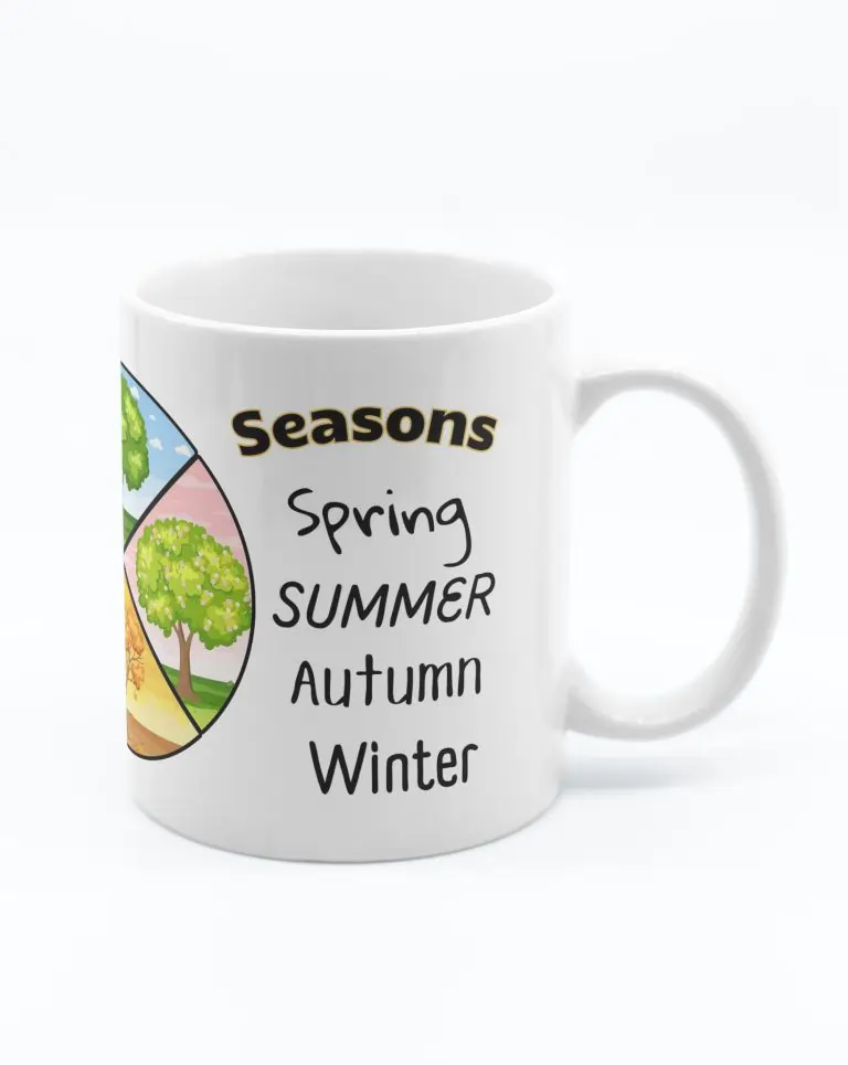 Pamiątkowy kubek dla ucznia z nadrukiem na prezent / upominek – Angielski – Pory Roku