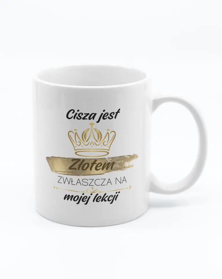 Pamiątkowy kubek na Dzień Nauczyciela z nadrukiem na prezent / upominek – Cisza jest złotem