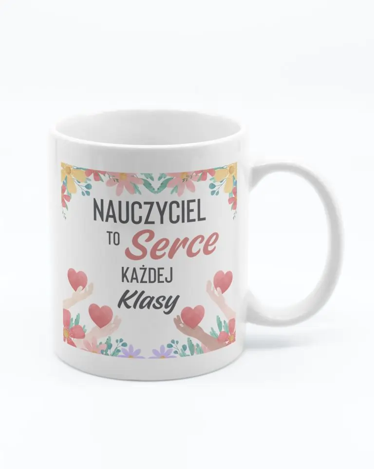 Pamiątkowy kubek na Dzień Nauczyciela z nadrukiem na prezent / upominek – Nauczyciel to Serce