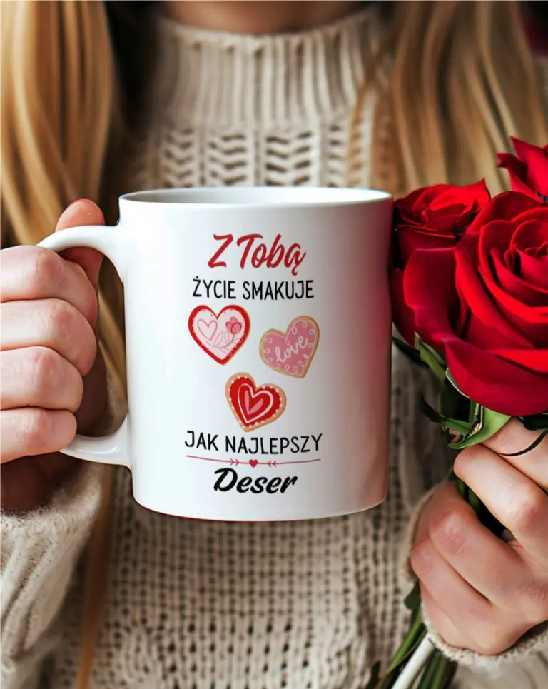 • Kubek na Walentynki – Z Tobą życie smakuje jak najlepszy deser